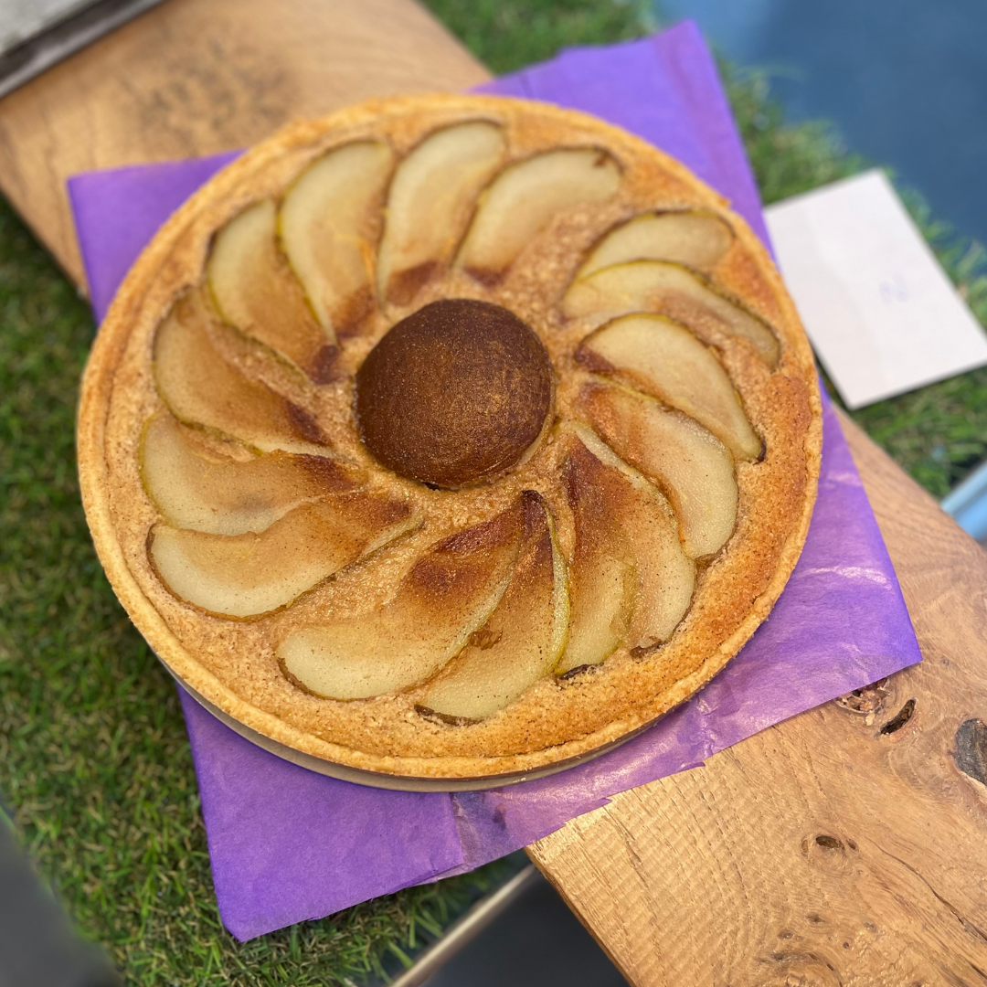 Ne vous fiez pas à son visuel brut et naturel : le croustillant de la pâte, le crémeux de l’amandine aux épices et le fondant des poires sont le combo parfait d’un régal assuré !